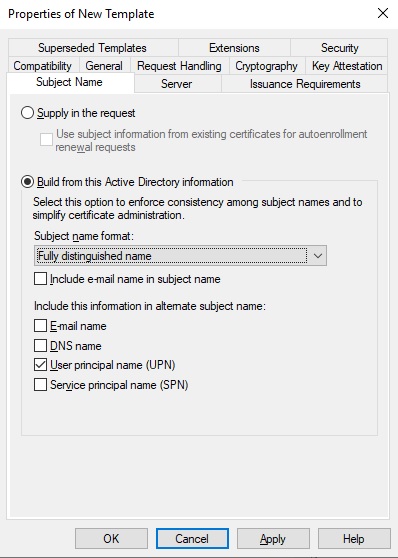 Select Fully Distinguished Name from the Subject name format drop-down list.