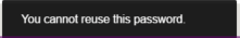 The password you are attempting to assign to the user is in the user's password history. You cannot assign a user a password that already exists in the user's password history. |