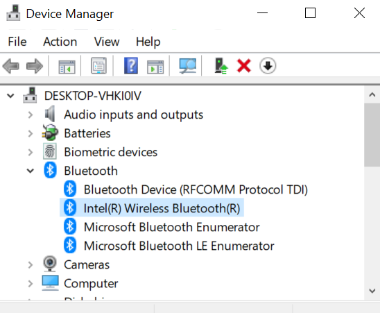 Select the Bluetooth device that corresponds to the installed hardware and double-click on the device to view its properties.