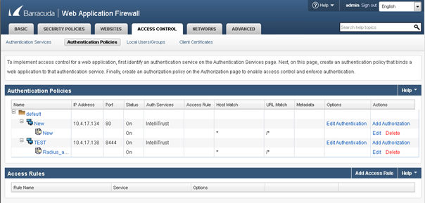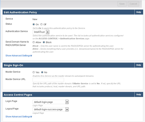 Click the Access Control tab. The New Authentication Service page appears.