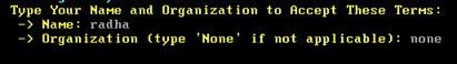 Once you complete reading the agreement, enter your name and organization to accept the terms in the agreement.