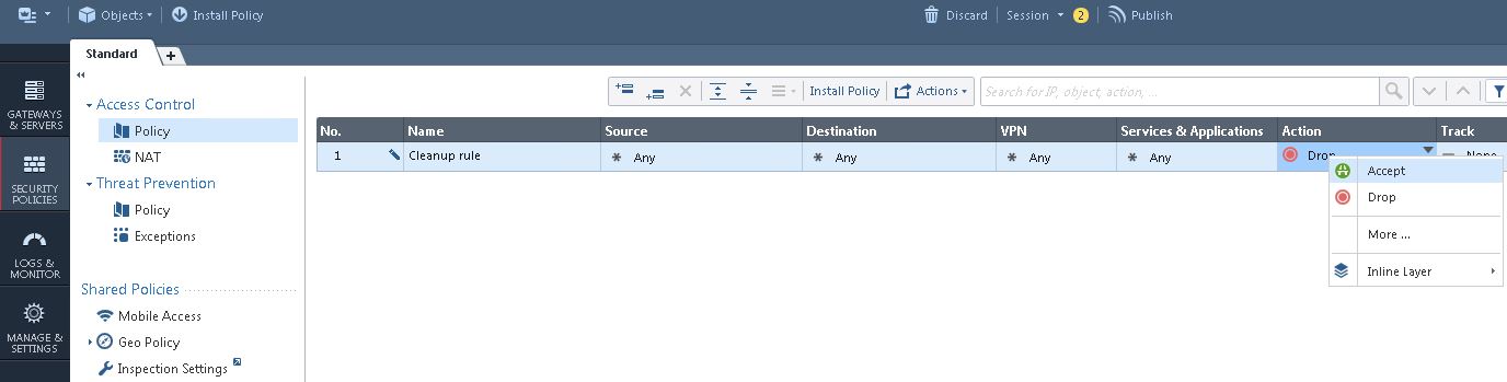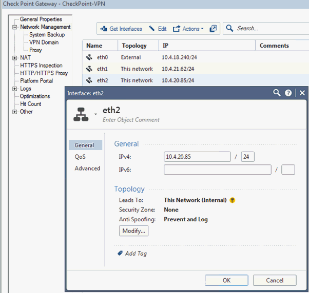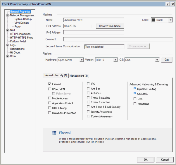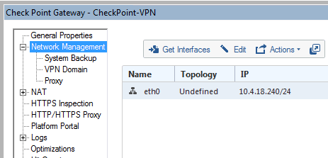 | Password | admin or the password when you configured the Check Point Gateway as part of the First Time Configuration Wizard. |