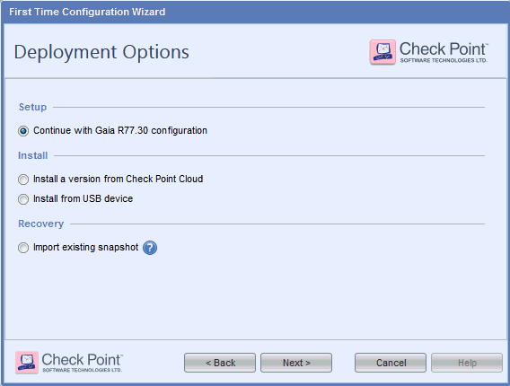 Select the option Continue with Gaia R77.30 configuration and then click Next. The Management Connection page appears.