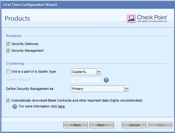 Select Security Gateway or Security Management and then click Next. The Products page appears.