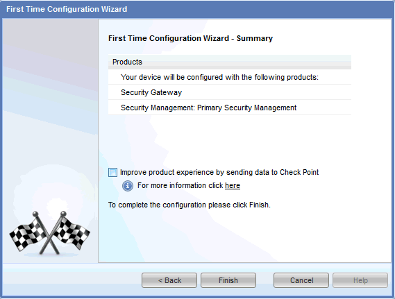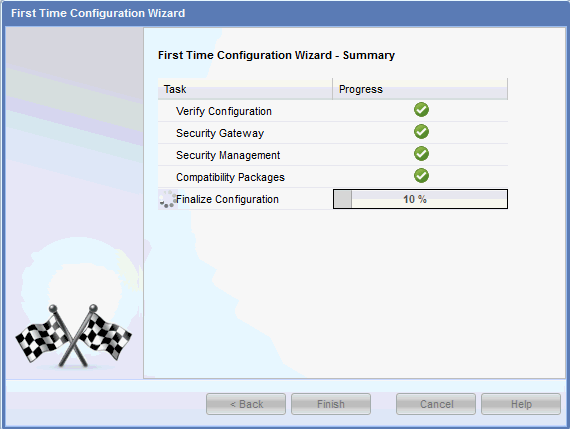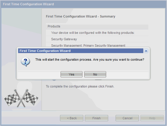 Click Yes. The Configuration Process progress page appears. It takes few minutes to complete First Time Configuration Wizard and then Check Point reboots automatically.