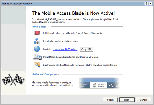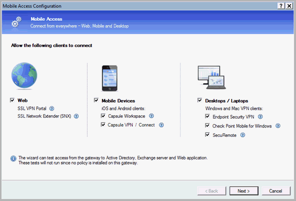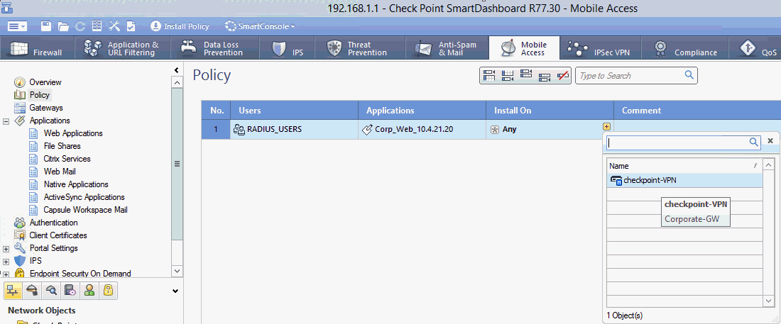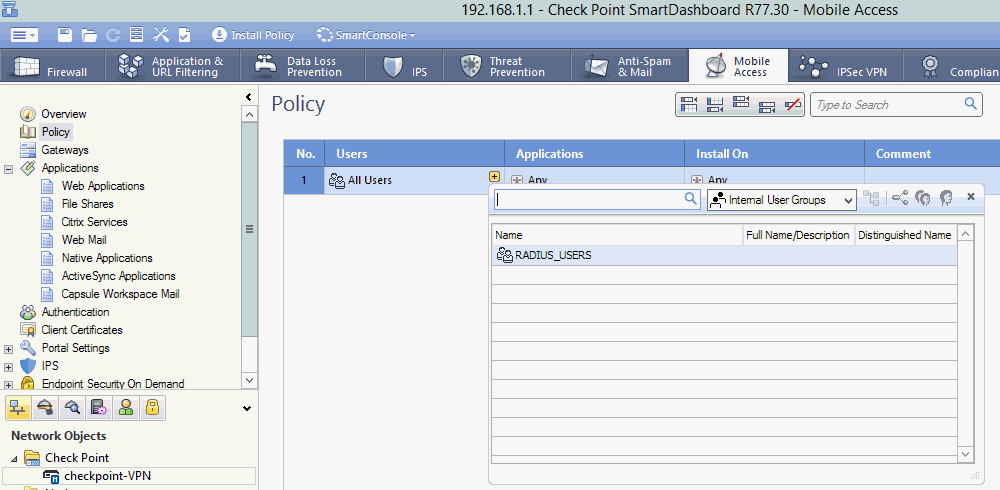 This section describes how to configure and integrate the Check Point Security Gateway with Identity as a Service. Check Point Security Gateway is used for Mobile Access (SSL VPN through a Web browser) and the IPSec VPN (Endpoint Security Client).
