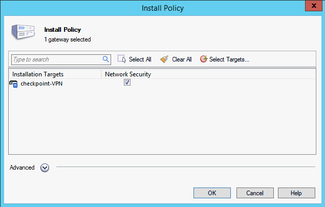 | Server name or IP Address | Check Point Security Gateway Management IP 192.168.1.1 or the IP address that you set. |