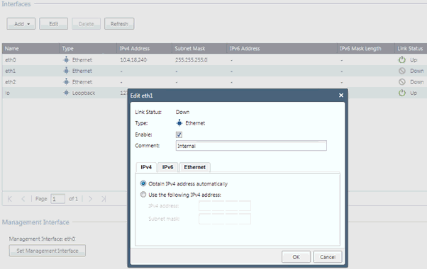 Click Network Interfaces, select eth1 and then click Edit. The Edit eth1 page appears.