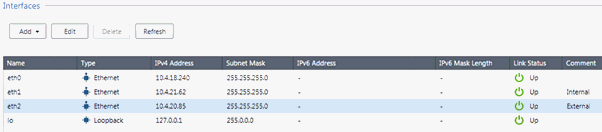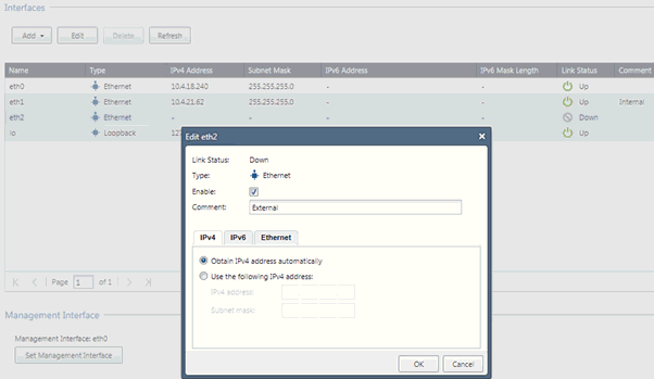 In the Network Interfaces page, select eth2 and then click Edit. The Edit eth2 page appears.