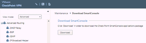In the menu, expand Maintenance and select Download SmartConsole. The Download SmartConsole page appears.