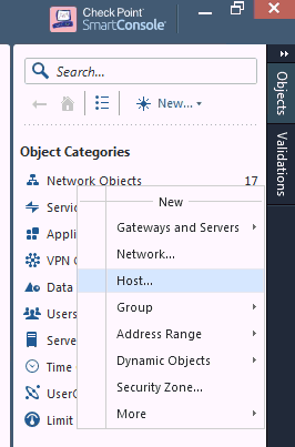 On the Check Point SmartConsole main page, right-click Network Objects.