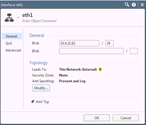 In the Edit eth1 page, do the following to set up the internal corporate network communication (for example, RADIUS authentication and application access):