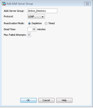 In the AAA Server Groups pane, click Add. The Add AAA Server Group dialog box appears.