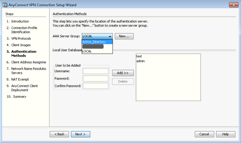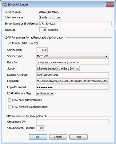 From the AAA Server Group drop-down list, select the Active_Directory server group, which you have added during AAA server group configuration.
