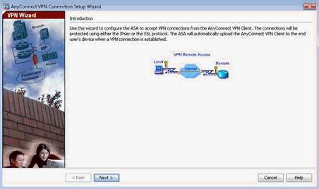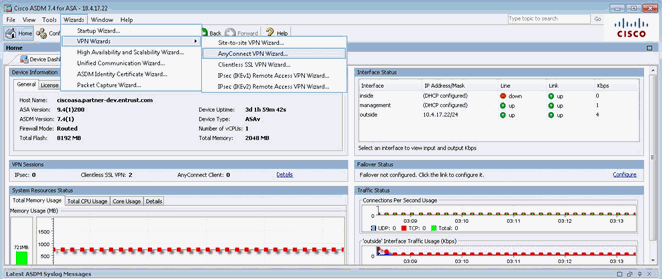 Click Wizard > VPN Wizards > AnyConnect VPN Wizard as shown.