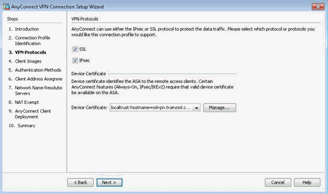 Select the VPN Protocols that you want this connection profile to support (SSL, IPsec or both).