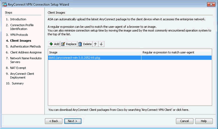 Click Add to select an AnyConnect Image file. The Add Any Connect Client Image dialog appears.