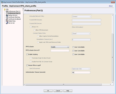 In the Timeout field, set the overall request timeout for VPN to at least 90 seconds.