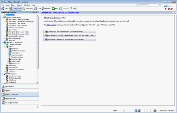 This configuration establishes a VPN tunnel by Cisco AnyConnect VPN Client running on the user’s PC. Once the network tunnel is established, the remote user can access the corporate network in the same way as being on-site.