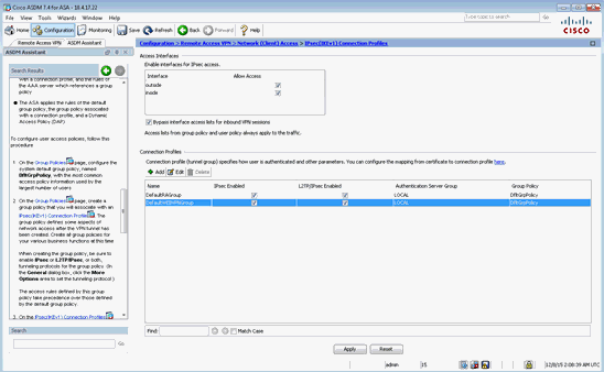 You have now configured an Adaptive Security Appliance for groups configured to use an IPSec Connection Profile.
