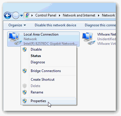 Right-click your Local Area Connection and select Properties to display the Local Area Connection Properties page.