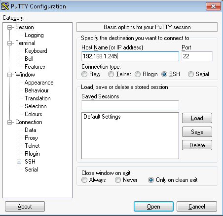 After assigning the static IP to the Client computer or workstation, launch the putty client to SSH to the F5 BIG-IP management IP client. The Putty Configuration page appears.