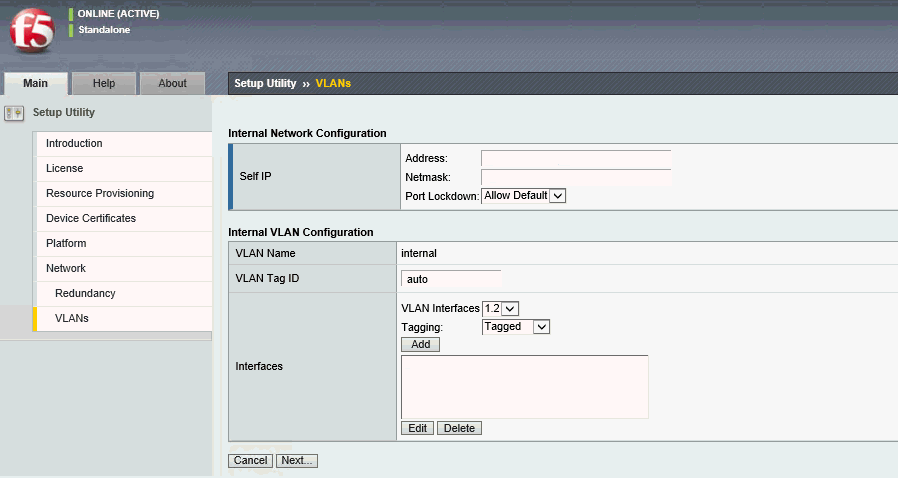 Using the Setup utility, you can configure the internal network by specifying self IP addresses and settings for VLAN internal, which is the default VLAN for the internal network.