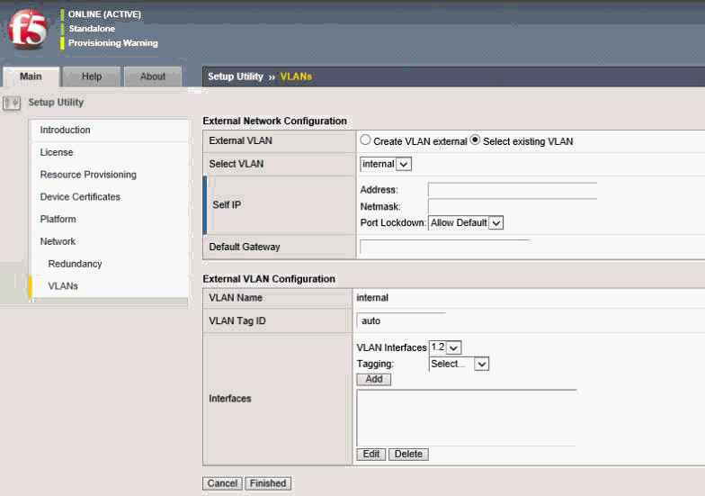 All F5 BIG-IP systems ship with a default network configured on the management interface. You can access the web-based Configuration utility through the management port, and configure the unit directly. You can use this method if you do not want to configure the management interface before you connect to the web-based configuration utility.
