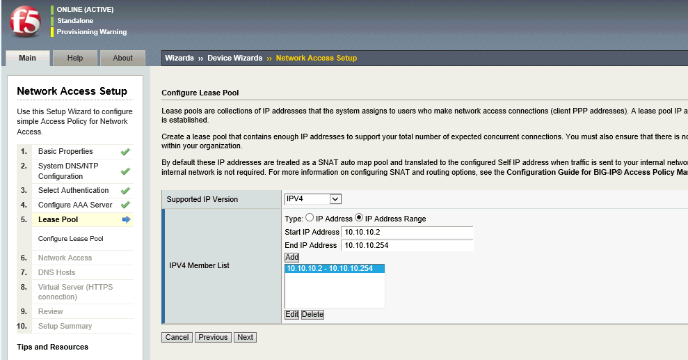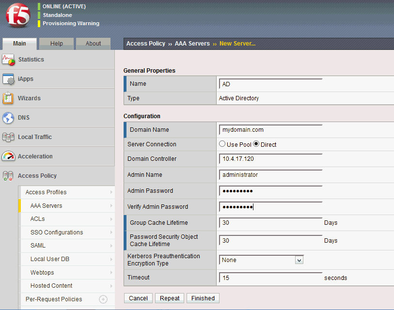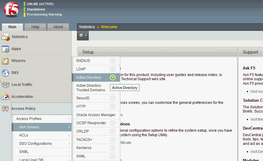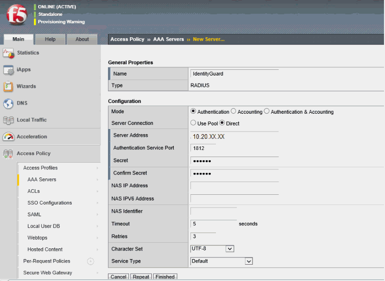 Complete the following steps, to configure the F5 BIG-IP Access Policy Manager to use the Identity as a Service proxy and enable VPN services.