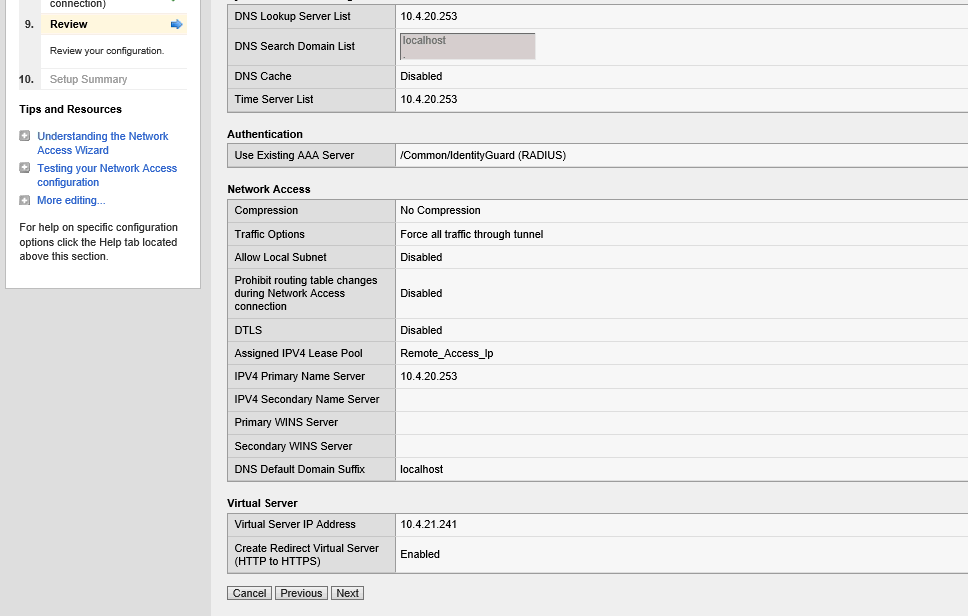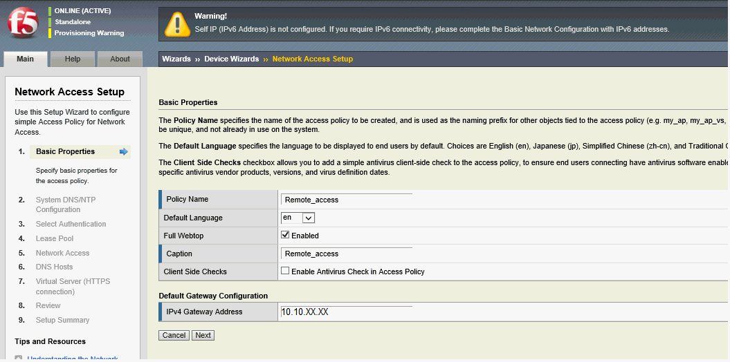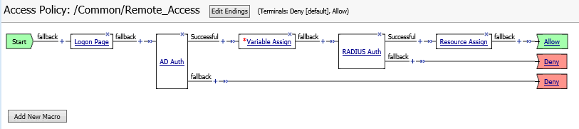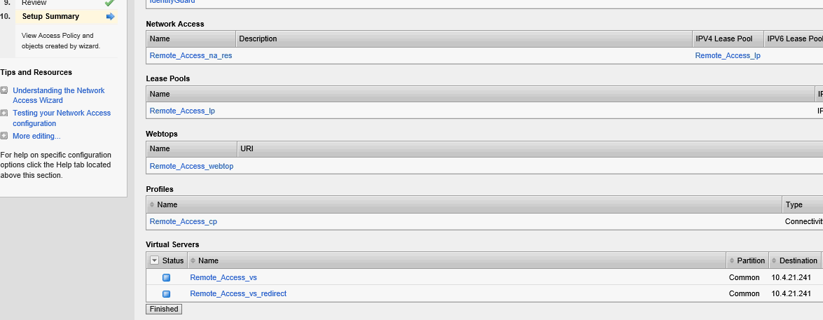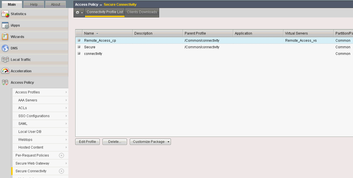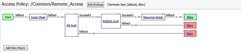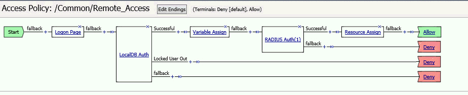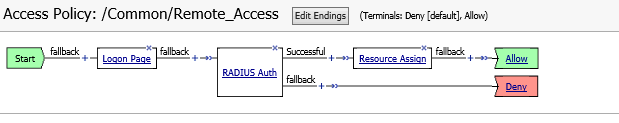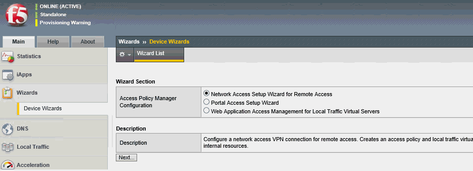 With Access Policy Manager, you can configure a network access VPN connection for remote access. Using network access, you create an access policy and local traffic virtual server so end users can establish a full VPN connection to internal network resources.