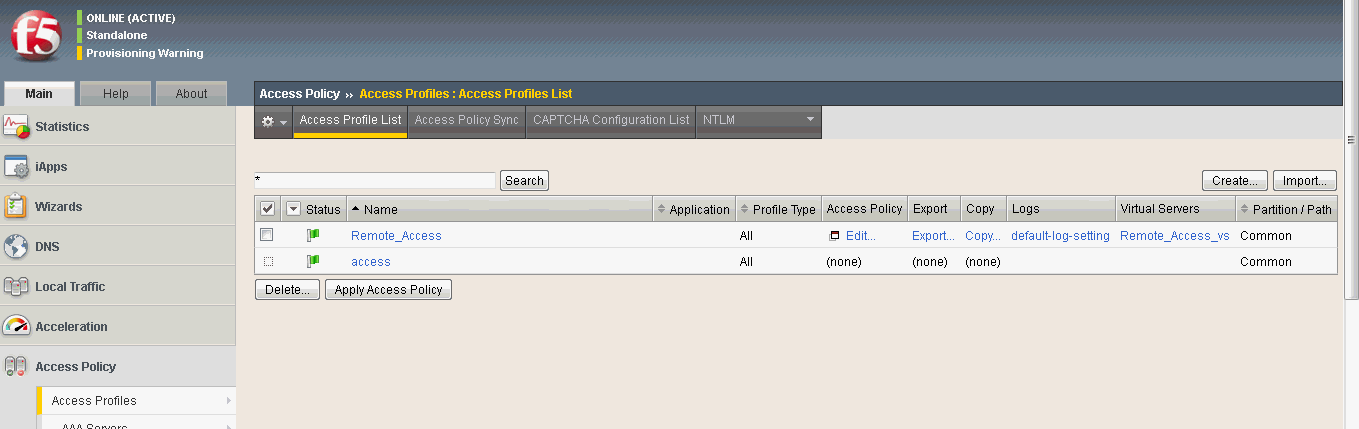 From the Access Policy (APM) drop-down module select Nominal.