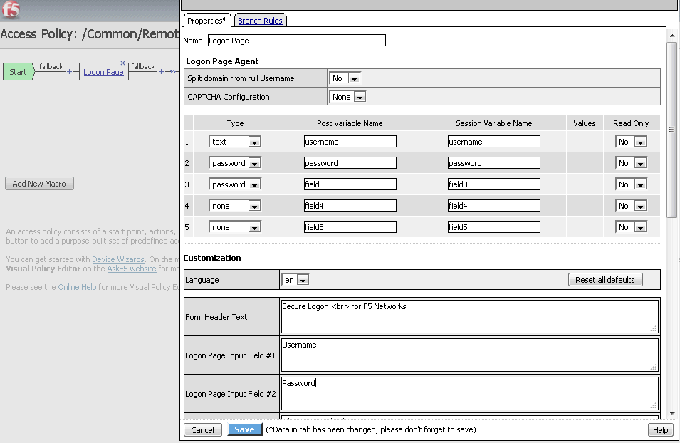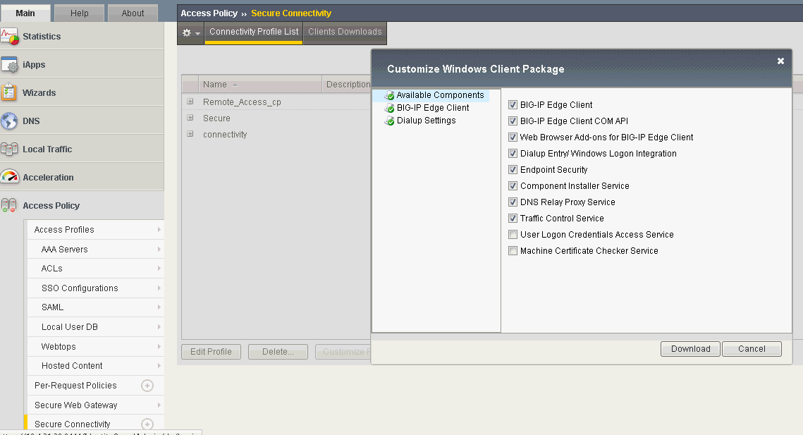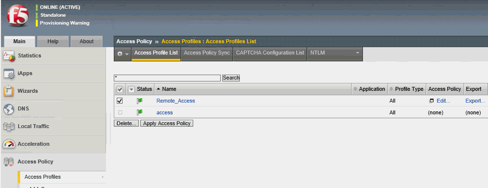 The F5 Big-IP Access Policy Manager provides a web-based Configuration utility. The Configuration utility includes tools for managing the Access Policy Manager, configuring secure access, creating and assigning resources, certificate generation and installation, and customization of the remote client user interface.