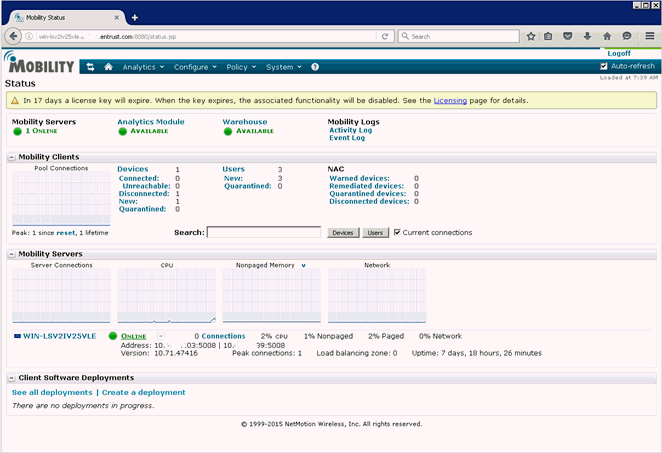 Log in to the NetMotion Console. The NetMotion Dashboard page appears.