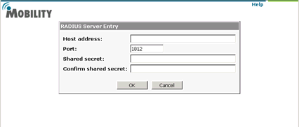 In the RADIUS Servers pane, click Add. The RADIUS Server Entry page appears.