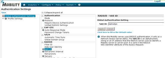 In the NAS ID field enter the name netmotion or the IP address of the NetMotion server.