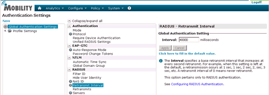 Select Radius > Retransmit Interval.