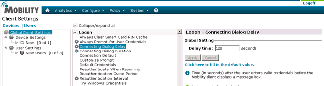 In the Delay Time field, enter the maximum time in seconds, for example 120. Click Apply.