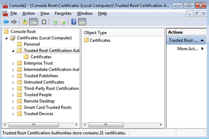 Import the SSL certificate into the local Trusted Root CA store on the NetMotion client machine.